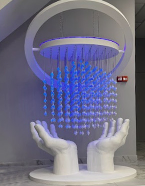 Арт-объект «Светящийся шар и руки». Факультет ИИ РУДН, Москва